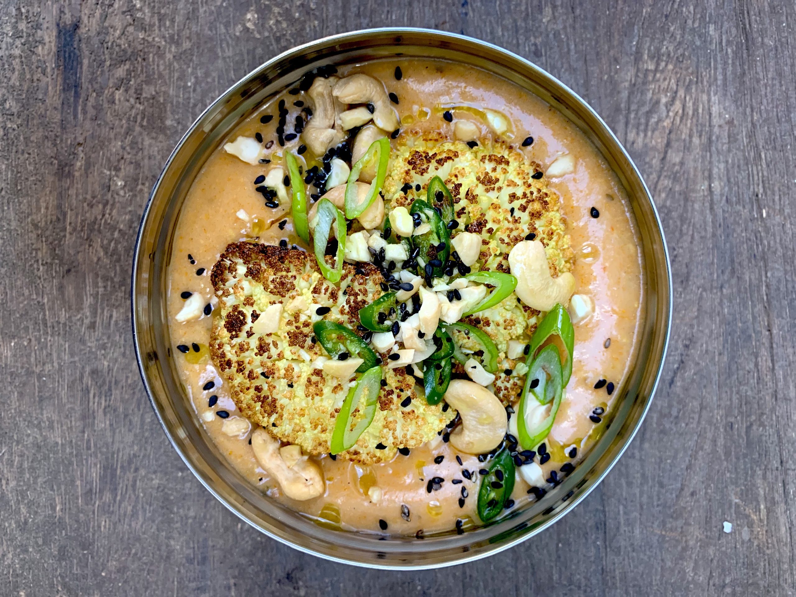In the first tin we had the sweet and spicy carrot, fennel and apple salad which acts as either a starter or something a bit fresher to balance the hot dishes beneath. Curries included the saucy sweet potato rogan josh and the can’t-believe-it’s-not-meat jackfruit keema muttar which we ate alongside Kashmiri saffron cinnamon pilau. Extras included poppadoms, chutneys and raita, as well as handmade roti and samosas which arrive cold but we’d recommend quickly heating in the oven before serving.