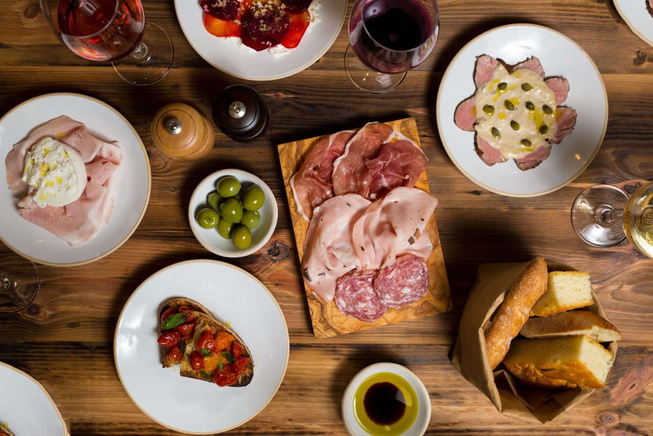 We started with a glass of the Franciacorta Cuvee Royale – ‘the champagne of Italy’ we were advised, and it did indeed have a pleasing biscuity taste. We were starving so wolfed down the doorstop wedges of focaccia and double dipped into the peppery olive oil and balsamic. Starters are a bit of a meat feast – we couldn’t resist ordering the pork tenderloin covered in tonnato (a cold, mayonnaise-like white sauce) AND the charcuterie – lovely thin slices of prosciutto crudo, truffle mortadella (our fave!) and salami.