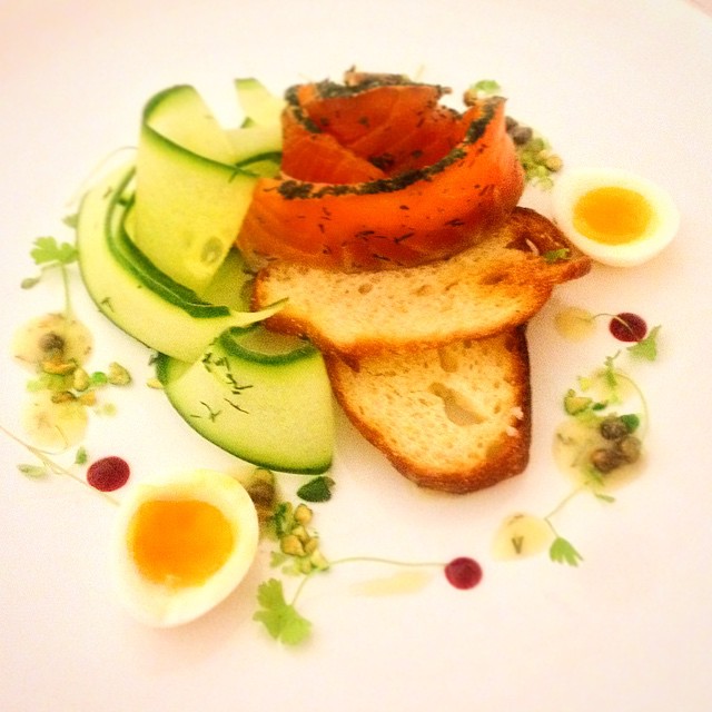 ‘Smoked Salmon Sundae’ Ice Cream, Fish Skin Wafer, Confit Salmon,