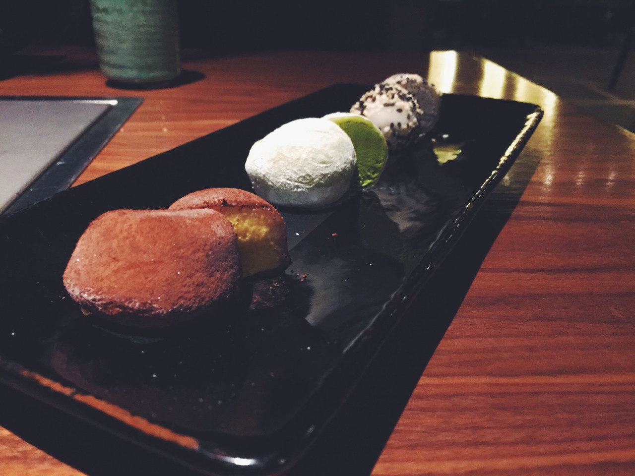 We opted for the Premium Course which was £44.50 per person and came with a wide assortment of plates from the obligatory Edamame beans to start alongside miso soup, a Kintan salad and the absolutely amazing tuna tartar volcano and seared salmon. The main plates included rib eye, short rib, filet mignon, halloumi, scallops, skirt steak and tiger prawns.