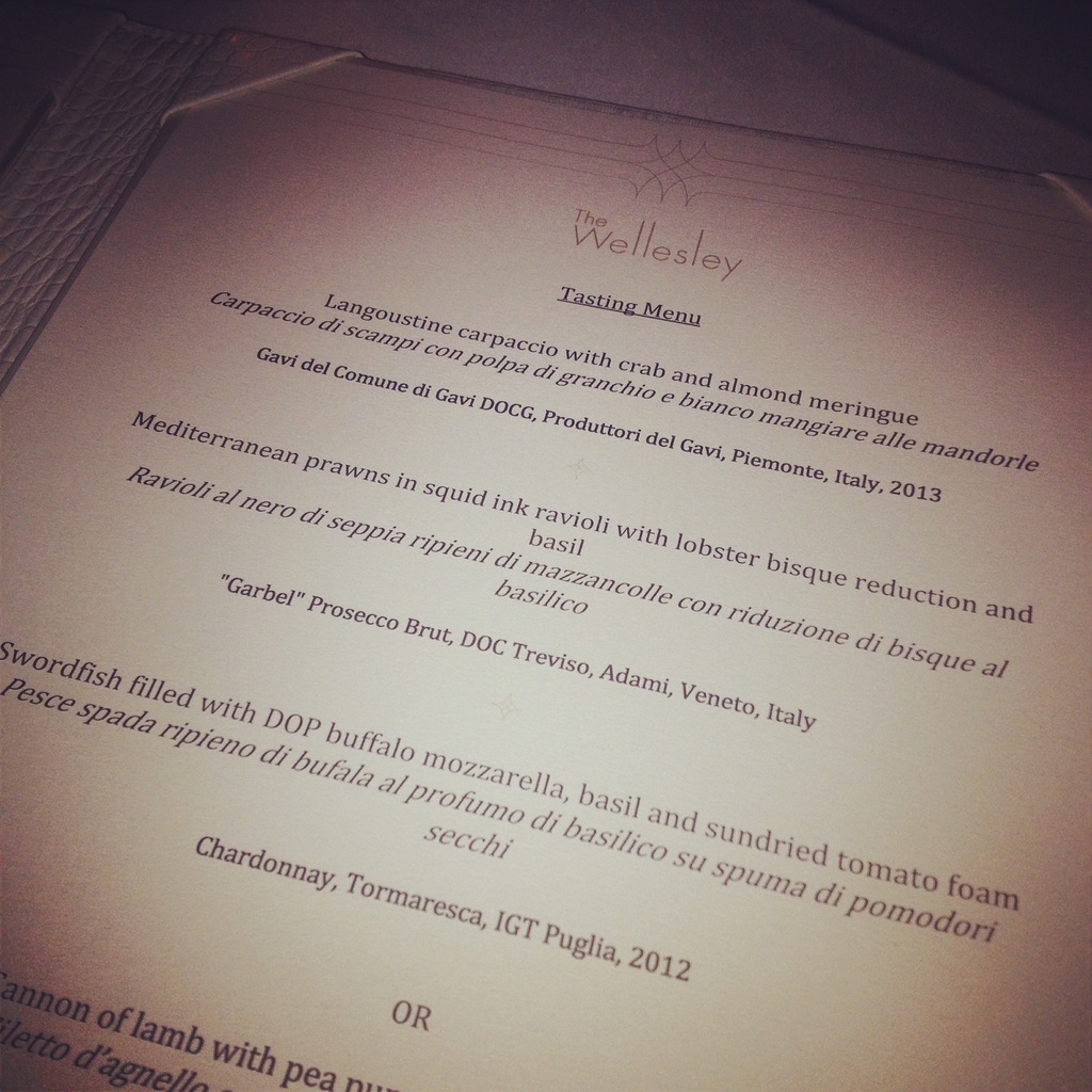 The Wellesleys Oval Restaurant is a modern and sophisticated room on their ground floor that offers intimate dining; all immediately apparent once you enter the small room doused in a low blue light and adorned in mirror and padded walls.