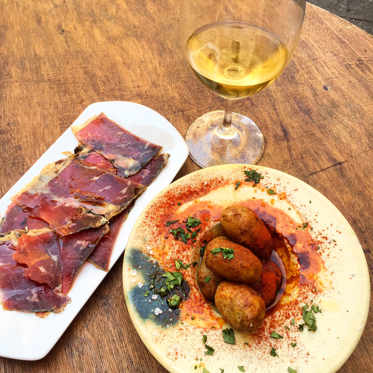 Bastaix – Grab a seat by the window and people watch to your heart’s content. A glass of cava with Goats cheese, honey & olive oil on piquillo peppers for when you’re not even hungry but you just can’t resist.